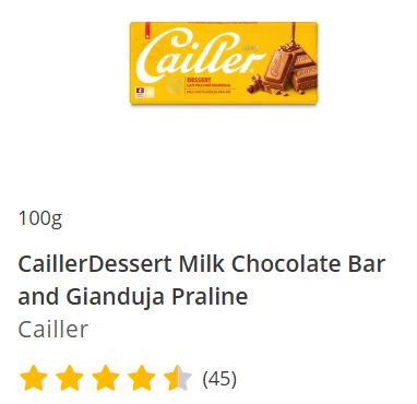 Cailler Dessert Milk Chocolate Bar and Gianduja Praline 100g